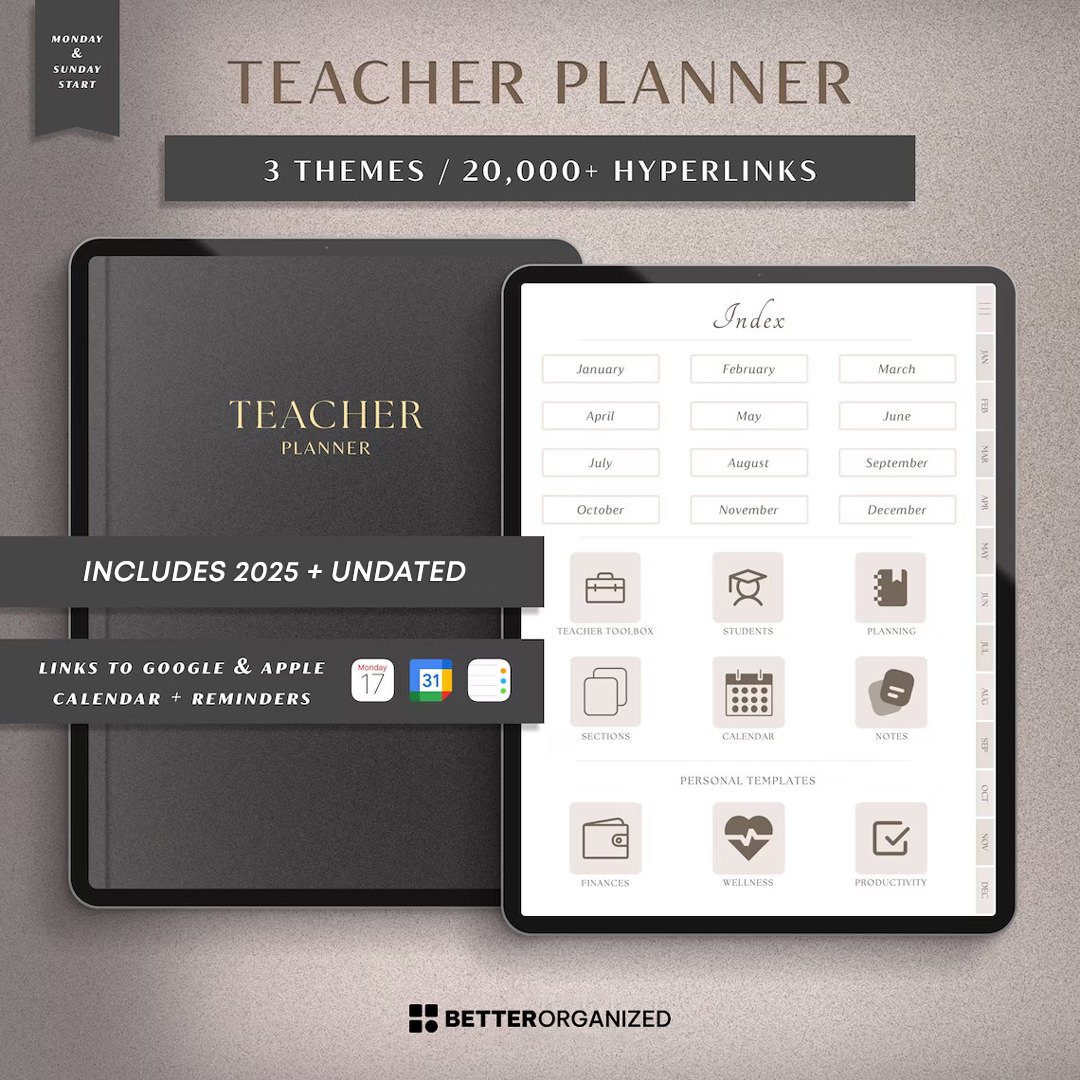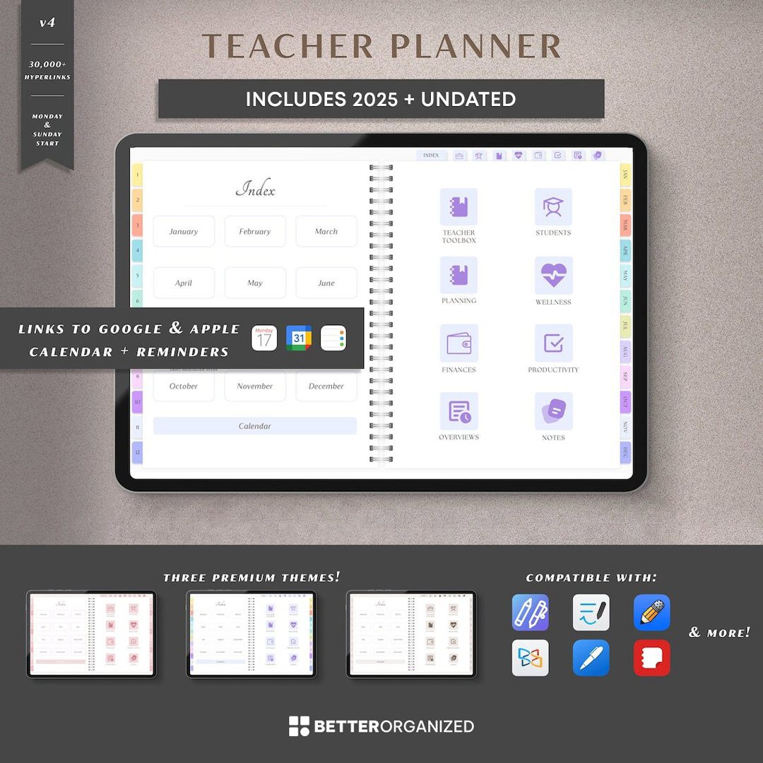 Struggling to streamline your lesson planning process? Imagine a digital teacher planner that not only simplifies organization but also enhances your efficiency. Our premium digital teacher planner offers a seamless solution, providing intuitive tools to effortlessly manage your lessons and tasks. Revolutionize your teaching experience today – invest in the ultimate companion for educators, and empower yourself with a planner designed to elevate your productivity and creativity in the classroom.